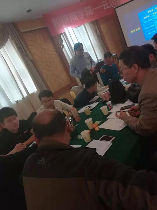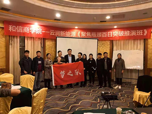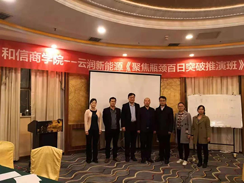 2018年11月3日—4日,云潤新能源針對企業(yè)發(fā)展過程中出現(xiàn)的業(yè)績瓶頸問題請和信商學(xué)院共同進(jìn)行專項研究培訓(xùn)。該培訓(xùn)共持續(xù)兩天一夜,期間商學(xué)院與云潤成員共同梳理業(yè)務(wù)流程、制定考核措施等。